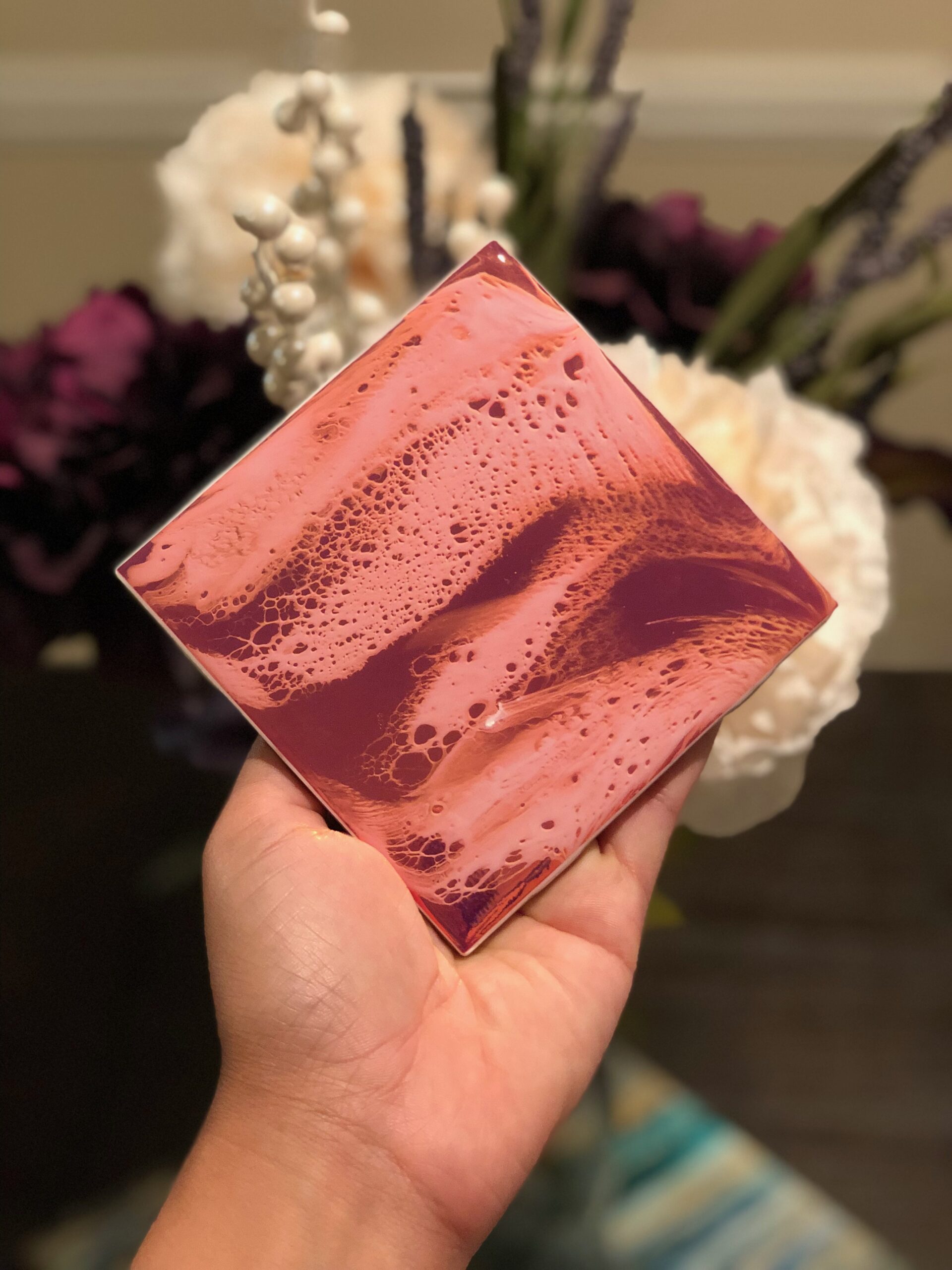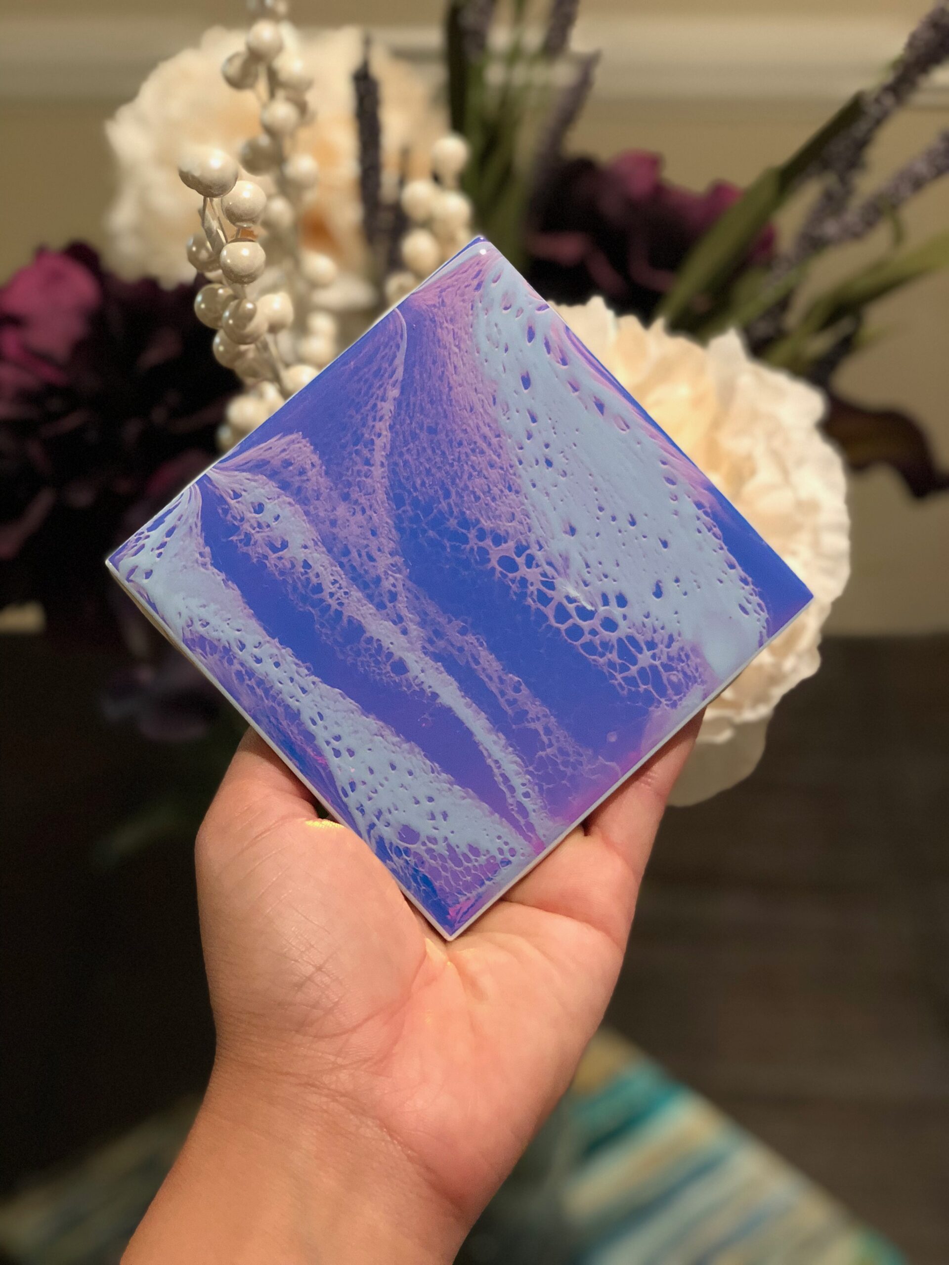 Wipe clean with damp soft cloth. Glass cleaner may be used on resin surface. Avoid using abrasive materials as it will cause damage. The resin is UV protected, but to prolong the life of the art, it is recommended that you do not sit resin pieces in direct sunlight for long periods. Heat resistant up to 500 degrees F. Not dishwasher safe, microwave or oven safe. Do not soak.